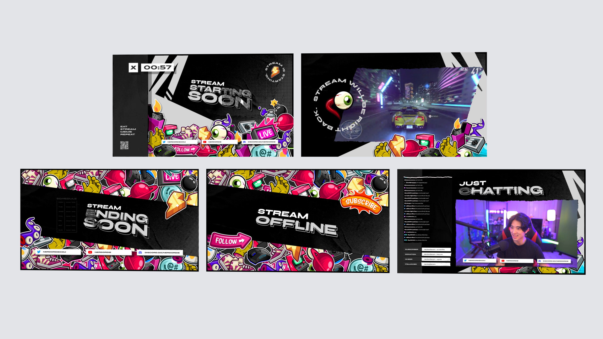 StickerBomb is a fun, wild, street style and fashion inspired stream package. Loads of colors, scenes, stickers and modular graphics are at your disposal to ramp up the excitement of your live content creation. The Complete StickerBomb pack also includes amazing alert, goal and chat widgets.